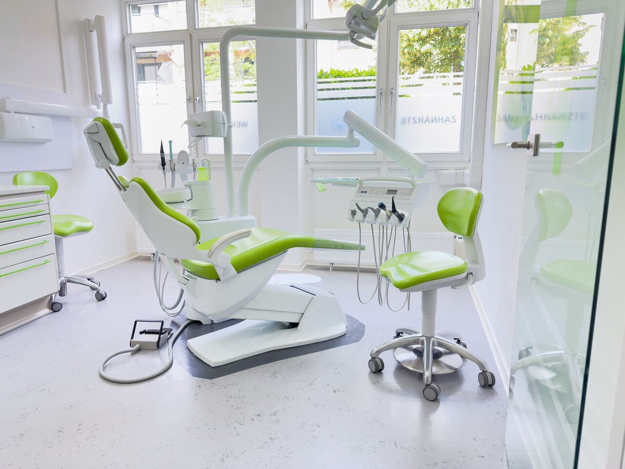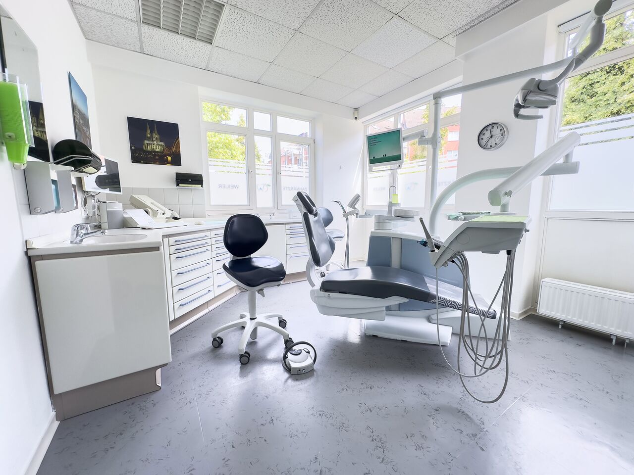 Unsere Praxisräume sind modern ausgestattet und technisch auf dem neuesten Stand. In den Behandlungszimmern sorgt eine leistungsfähige Klimaanlage für eine angenehme Temperatur und gute Luftqualität – unabhängig davon, wie das Wetter draußen ist.